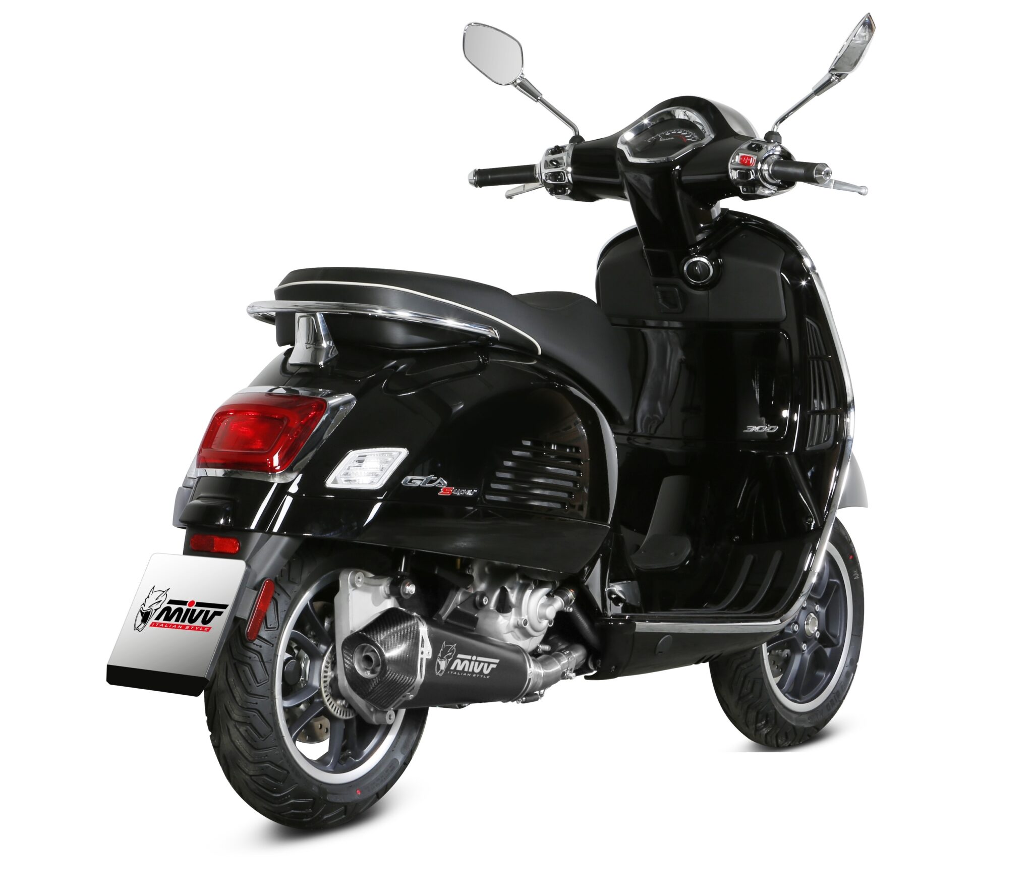 MIVV leverancier van uitlaat systemen brengt twee nieuwe uitlaten voor de Vespa GTS 300 die een dubbele functie vervullen: een verfijnde uitstraling gecombineerd met een subtiele prestatieverbetering. Beide opties volgen de officiële homologatie en zijn geldig voor alle versies van de GTS 300, modellen 2021-2024.