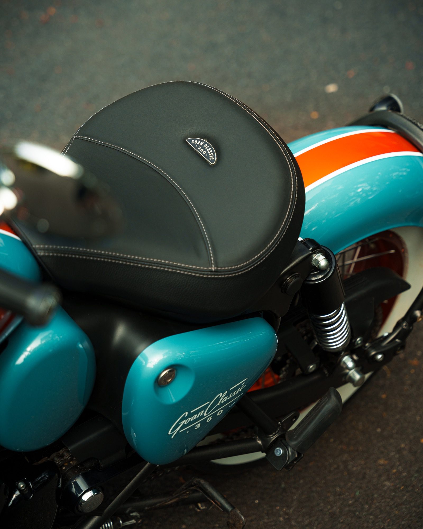 De Goan Classic wordt uitgebracht in de exclusieve kleur Trip Teal – een opvallende mix van turquoise en oranje mandala-graphics, gecombineerd met chromen accenten en schuin afgesneden uitlaatdempers. Dit zorgt voor een eigentijdse interpretatie van de traditionele bobberstijl.
