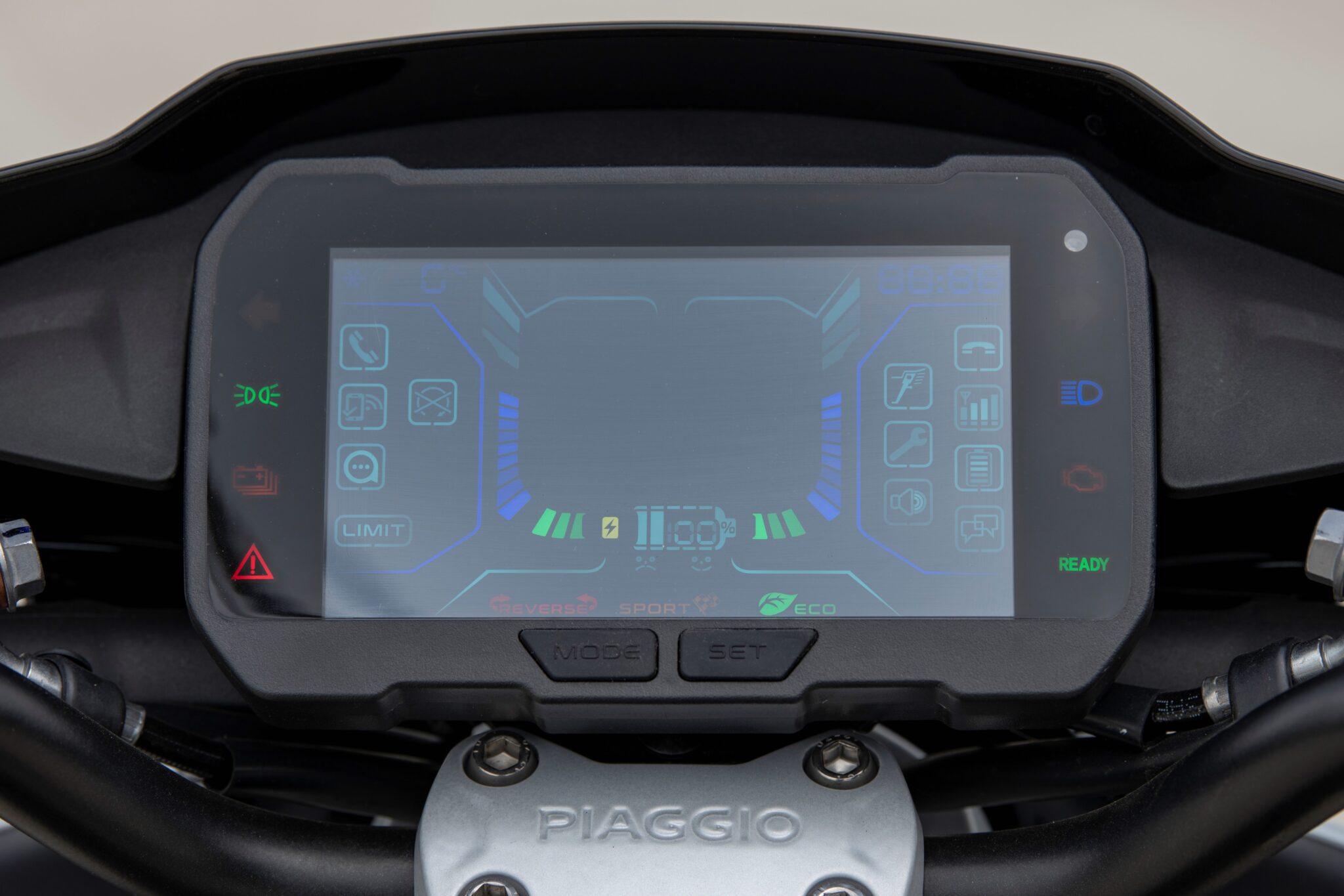 Piaggio had voor ons in Breda twee 45km-versies klaargezet, waarvan de ene scooter was uitgevoerd met de laatste nieuwe software updates inclusief de booster, de ander had dit logischerwijs niet. Een ander eigenschap wat de fabrikant heeft aangepakt is namelijk het vrij vlot teruglopen van de topsnelheid. Piaggio 1