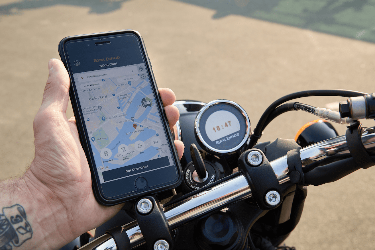 Welke uitvoering je ook prefereert (ik kijk zelf erg uit naar de gele Fireball…), je wordt altijd voorzien van het nieuwe Tripper systeem. Hier reden we vorige maand al mee, toen het systeem zat gemonteerd op de nieuwe Euro5-Himalayan’s en dat beviel eigenlijk heel erg goed. Het staat gekoppeld aan een door Google Maps ondersteunende app, en wijst je turn-by-turn de weg door middel van pijlen en laat je aflopend het aantal meters voor de eerstvolgende ‘turn’ zien. Werkt simpel en intuïtief. Toevallig een Bluetooth-communicatiesysteem op je helm zitten? Dan word je in het Engels ook nog vocaal begeleid. Op de Meteor 350 past de ronde klok van de Tripper met chromen rand ook nog eens perfect naast de in dezelfde stijl uitgevoerde snelheidsmeter.