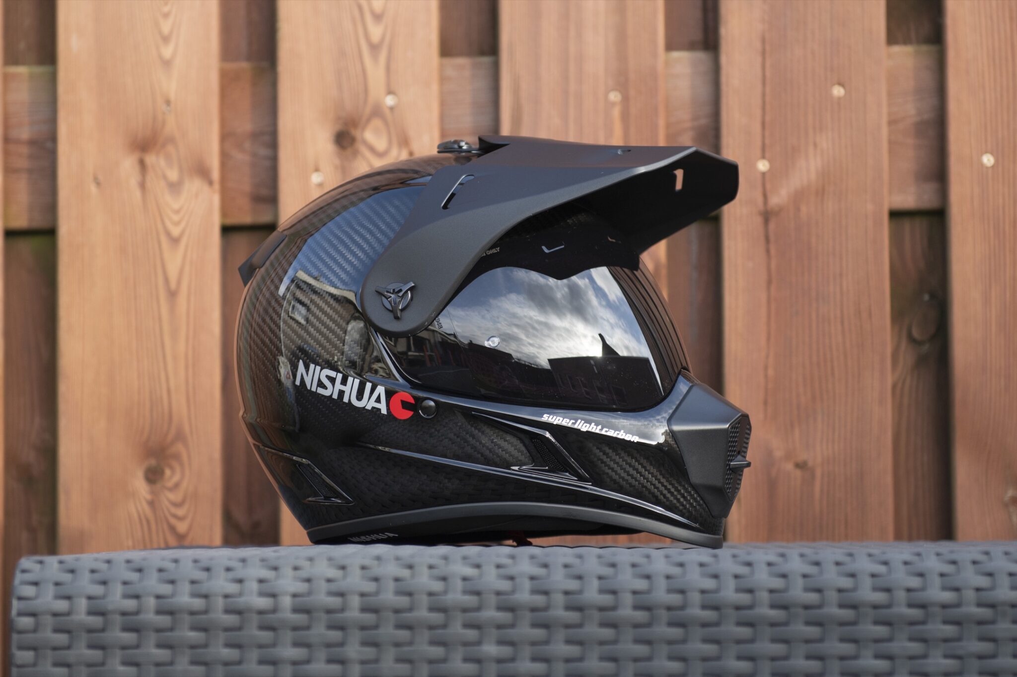 Het vizier verwisselen is overigens een fluitje van een cent, en dat is fijn als je – net als ik – graag met een donker vizier rijdt. Ook de klep is makkelijk afneembaar, door 3 schroeven los te draaien. Maar juist die klep geeft de helm zijn enduro-look, en zelfs op de snelweg gaf dat niet al te veel turbulentie.